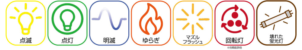 点灯 常時一定の明るさで点灯 明るさ(0~100%)